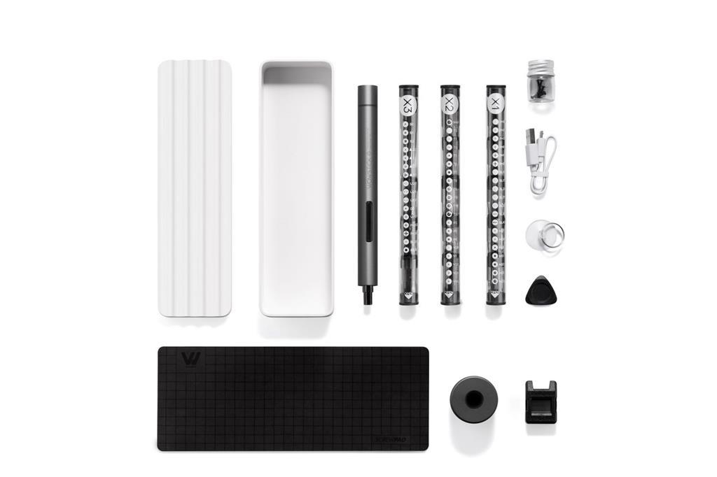 Električni izvijač za mobilne telefone, tablice in prenosnike, srebrne barve, 0.2Nm, z LED-svetilko, polnilni izvijač s 56 biti