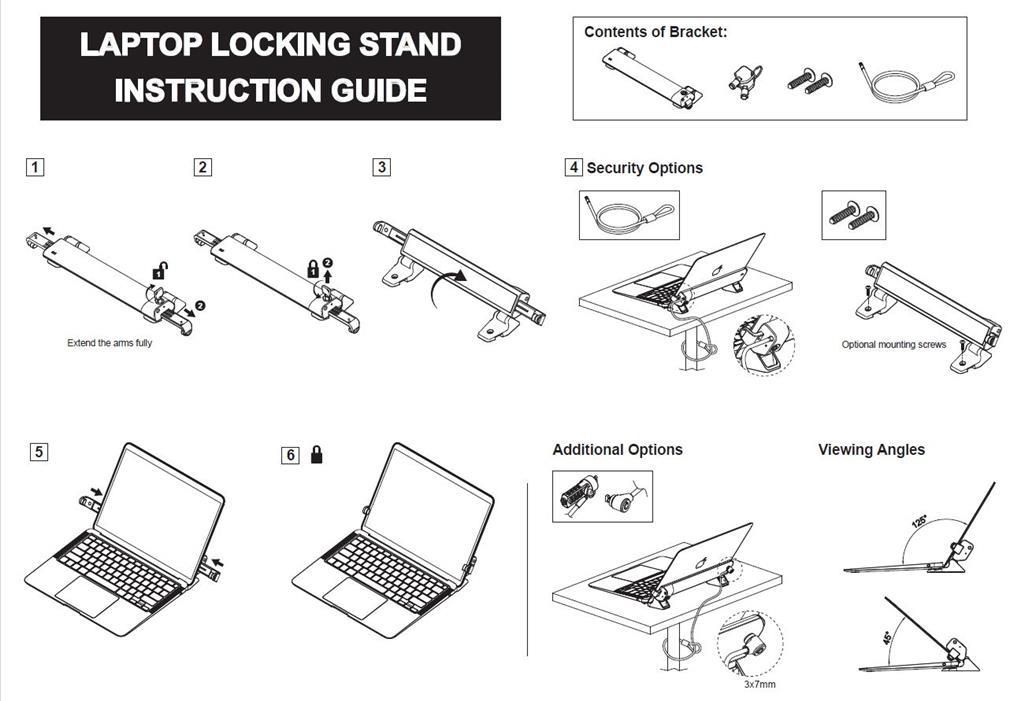 Zaščitite svojo elektronsko napravo na javnih mestih, na primer v pisarni, v šoli ali med potovanjem. eStuff security lock varuje vašo napravo, osebne informacije in podatke pred krajo. Enostavno ga je namestiti in napravo lahko trdno pritrdite na mizo, mizico ali katerikoli drug fiksni predmet.