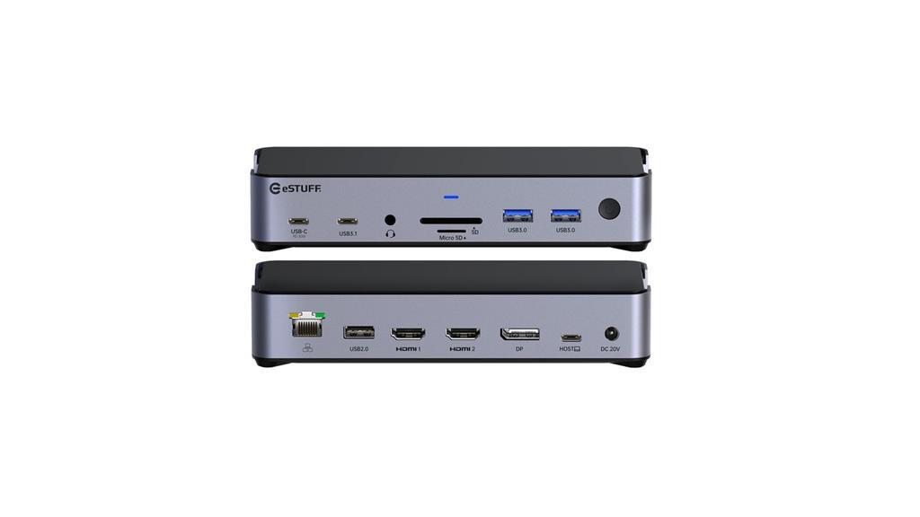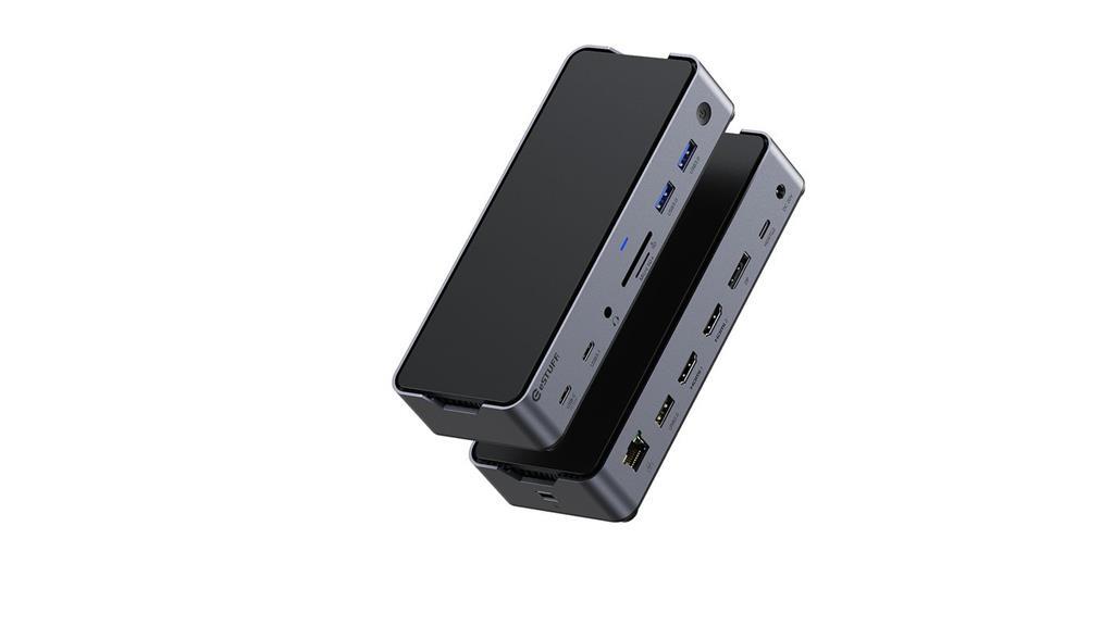 Stilsko aluminijasto ohišje združuje visoko zmogljivost in prilagodljivost s širokim naborom funkcij, vključno z do 100W PD polnjenjem, gigabitnim ethernetom s PXE zagonom in posredovanjem MAC naslova, petimi USB priključki za povezavo naprav in čitalnikov kartic.