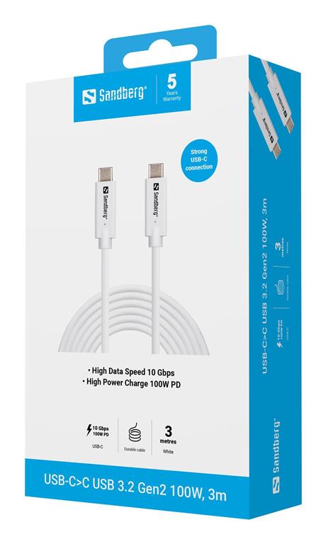 Ta Sandberg kabel podpira hitrosti prenosa podatkov do 10 Gbps. Prenesite velike datoteke, pretakajte video ali sinhronizirajte svoje naprave z visoko hitrostjo. Podpira PD polnjenje do 100W.