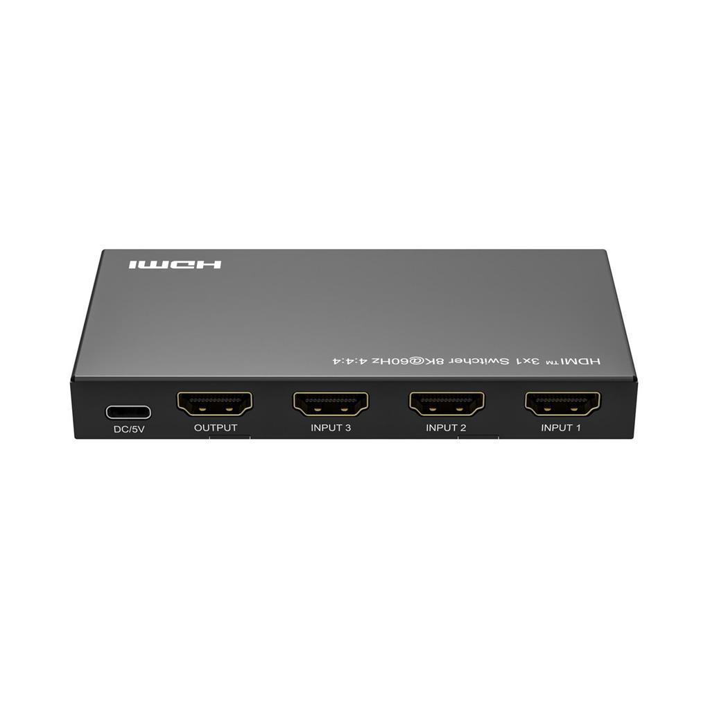 Posodobite svoj domači kino, igralno okolje ali profesionalni AV sistem z HDMI 8K stikalom 3x1, ki omogoča povezavo do treh HDMI naprav na en zaslon ali projektor. Oblikovan za ultra-visoko ločljivost, to stikalo podpira 8K@60Hz (4:4:4), 4K@120Hz in 1080p@240Hz ter zagotavlja izjemno vizualno izkušnjo s kristalno čisto sliko.