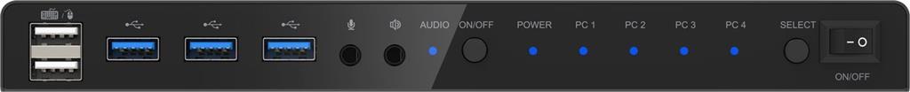 - Več možnosti upravljanja – Preklapljajte naprave brez napora z gumbi na prednjem panelu ali z bližnjicami na tipkovnici.