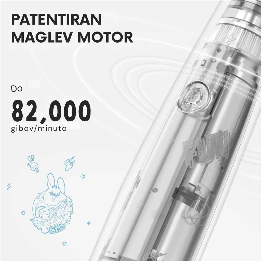 Tehta le 67 g, kar je 48 % manj in 32 % manjše od običajnih električnih zobnih ščetk – popolna velikost za otroške dlani.