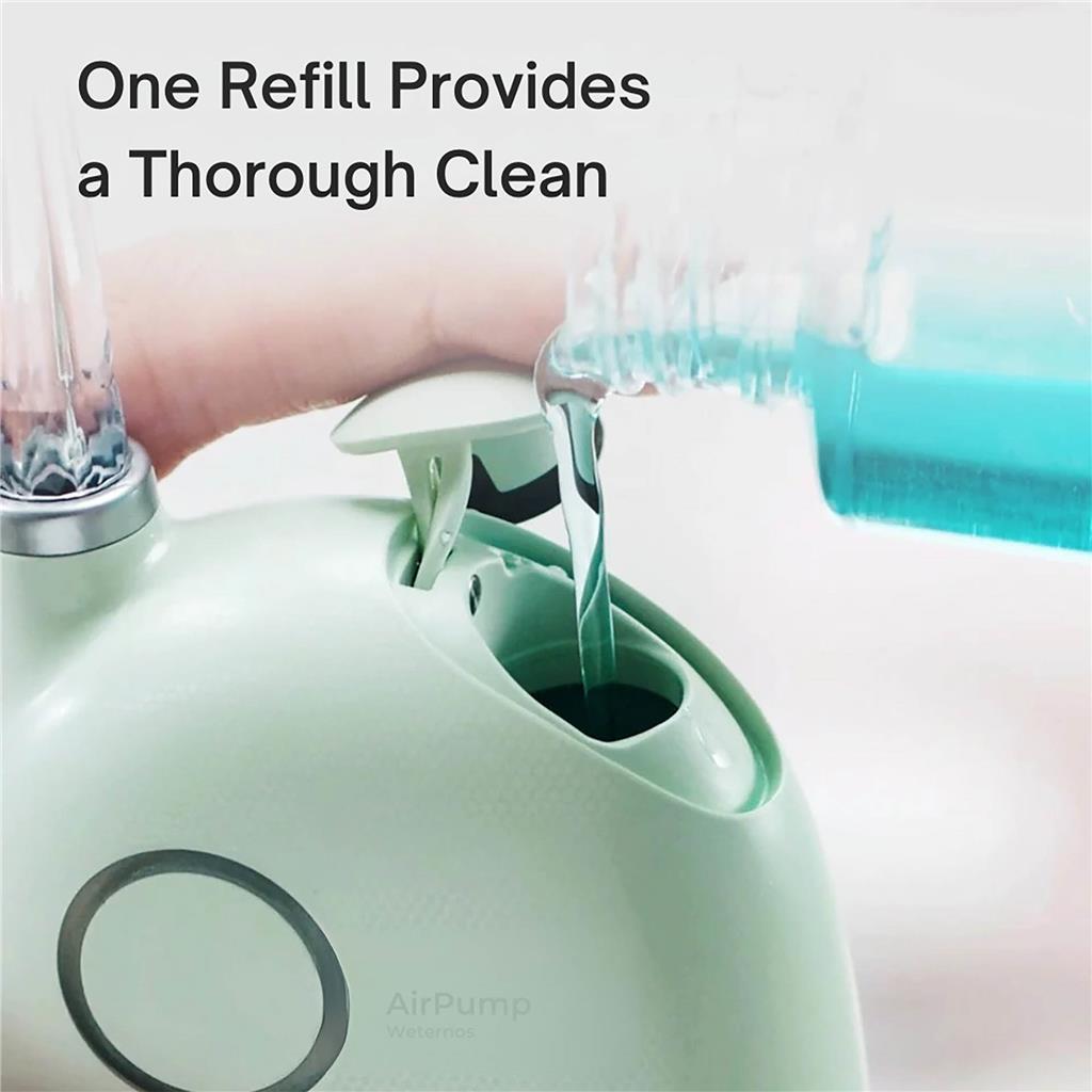 Tehnologija AirPump združuje zračni in vodni curek z do 98 % vsebnostjo zraka. S pulznim izpustom učinkovito in nežno odstrani ostanke hrane med zobmi ter prispeva k boljšemu zdravju ustne votline.