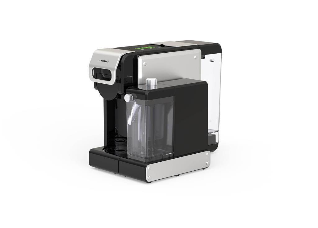 Tornado TST-550M-GS dvigne pripravo kave z več kapsulami na višjo raven. S šestimi načini kuhanja – mleta kava, Nespresso®, Dolce Gusto® (1 in 2), Lavazza Blue® in ESE Pods – ter integriranim 0,3-litrskim rezervoarjem za mleko in samodejnim penilnikom ponuja popolno kavarniško izkušnjo doma.