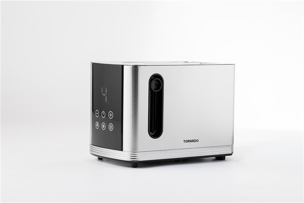 Tornado TTA751-GS je digitalni opekač kruha za 2 rezini, ki združuje prefinjeno estetiko in sodobno funkcionalnost ter je zasnovan za natančnost in vsakodnevno udobje. Z ohišjem iz brušenega nerjavečega jekla in elegantnim LED zaslonom prinaša vrhunski videz na vaš pult, hkrati pa ponuja enostavno upravljanje na dotik.